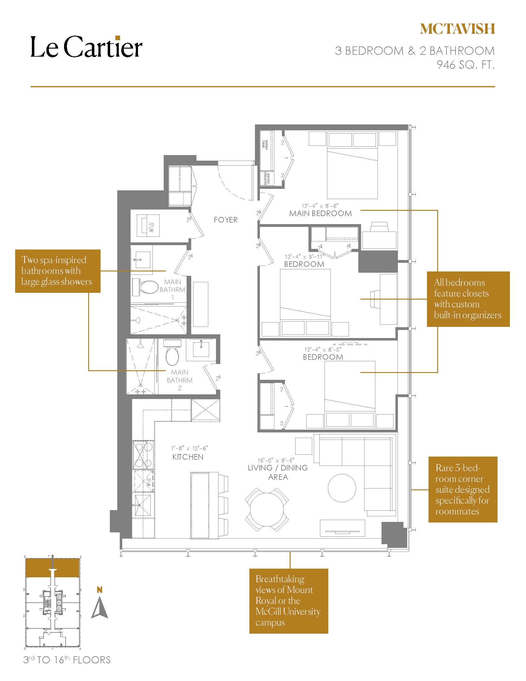 • Rare 3-bedroom corner suite designed specifically for roommates