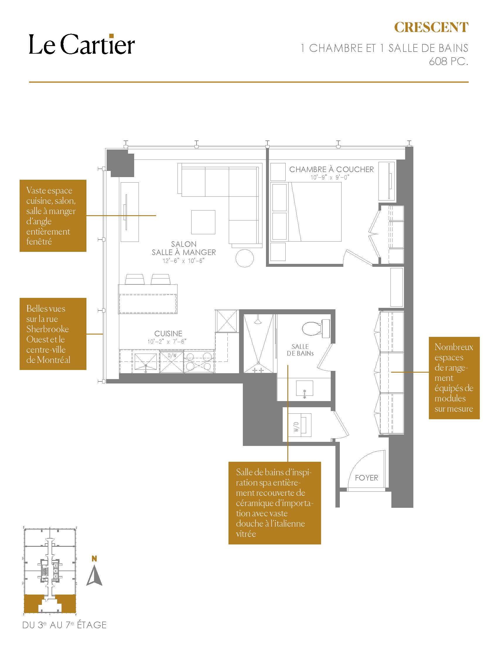 Le luxe est en équipement de base au Cartier. Avec son stationnement intérieur avec voiturier, sa conciergerie ouverte 24 heures sur 24, sa salle de réception du courrier privée et sa salle réfrigérée pensée pour ceux qui font leur épicerie en ligne, tous les aspects du quotidien ont été considérés avec soin pour faciliter la vie des résidents.